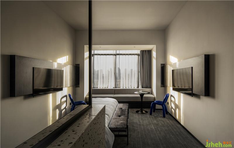 南昌酒店設(shè)計(jì)以此為出發(fā)點(diǎn)賦予客房三個(gè)不同的主題:藍(lán)色-冰川、紅色-極晝、黑色-極夜。