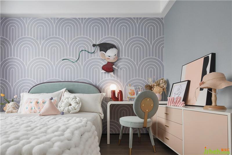 兒童空間里奈美良智的畫充滿著內(nèi)?的叛逆與倔強,個性與獨特的并存株洲樣板房設計,在這個房間?,表達??孩對藝術的熱愛,對世界好奇且勇敢的態(tài)度。