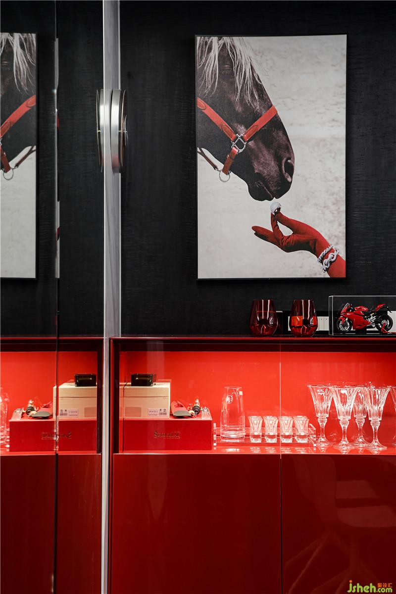 “馬”的元素不止一次地出現(xiàn),因?yàn)轳R給我積極向上的態(tài)度,激勵(lì)著我不畏艱險(xiǎn),奮勇向前。墻面上的橙色柜門板也起到了裝飾點(diǎn)綴和呼應(yīng)床背景中心的作用。