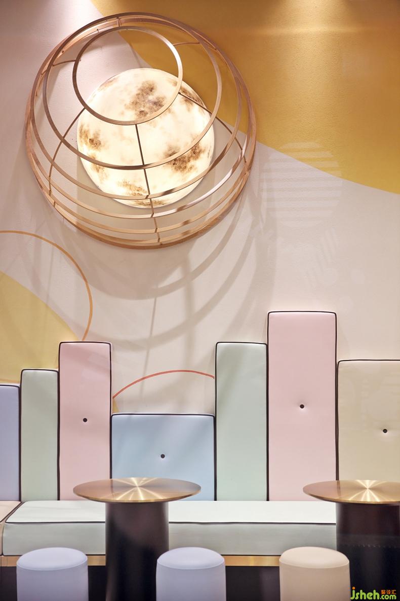 豐富亮眼的彩色座椅和醬寶與星球故事的墻繪,讓原本單一的空間變得溫暖,多了一分煙火氣息,呈現(xiàn)給顧客有趣而溫馨的感覺。設(shè)計(jì)公司