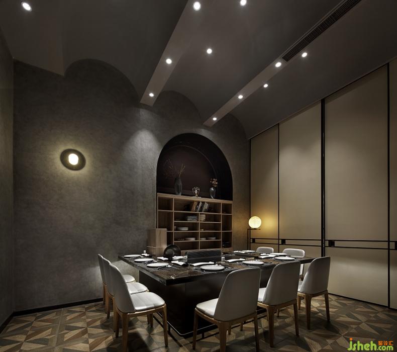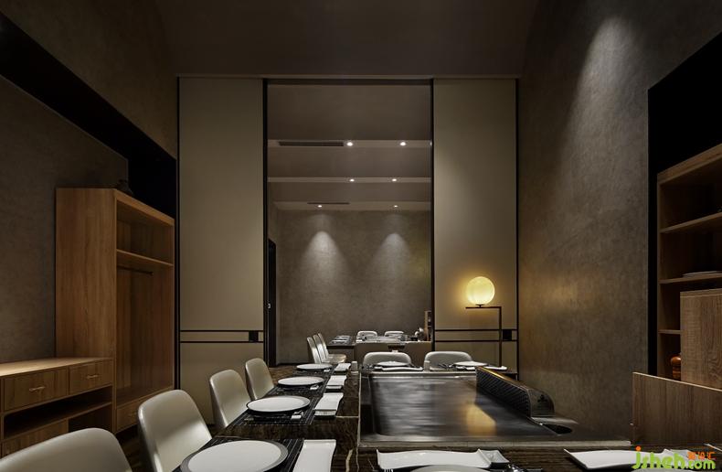 包間區(qū)域強(qiáng)調(diào)空間的隱私感,灰色移動(dòng)門搭配黑色門框,既保護(hù)了空間的寬敞性,合理打造出設(shè)計(jì)感強(qiáng)烈卻又不失優(yōu)雅、閑適的高端空間。天然紋理的灰色石材與天然紋理的地磚相呼應(yīng),橡木材質(zhì)的家居貫穿其間,讓包房空間保留了最自然的姿態(tài)。