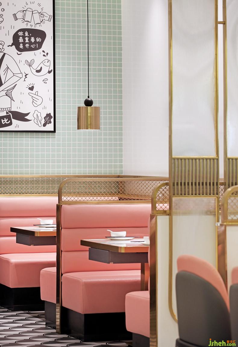 品牌文化為空間注入鮮活的靈魂,“無魚倫比”的主題插畫、“酸菜和魚 我和你 都是絕配”等品牌文案,皆是年輕人青睞的趣味化溝通方式,拉近空間、食物與顧客之間的距離。深圳餐廳設(shè)計