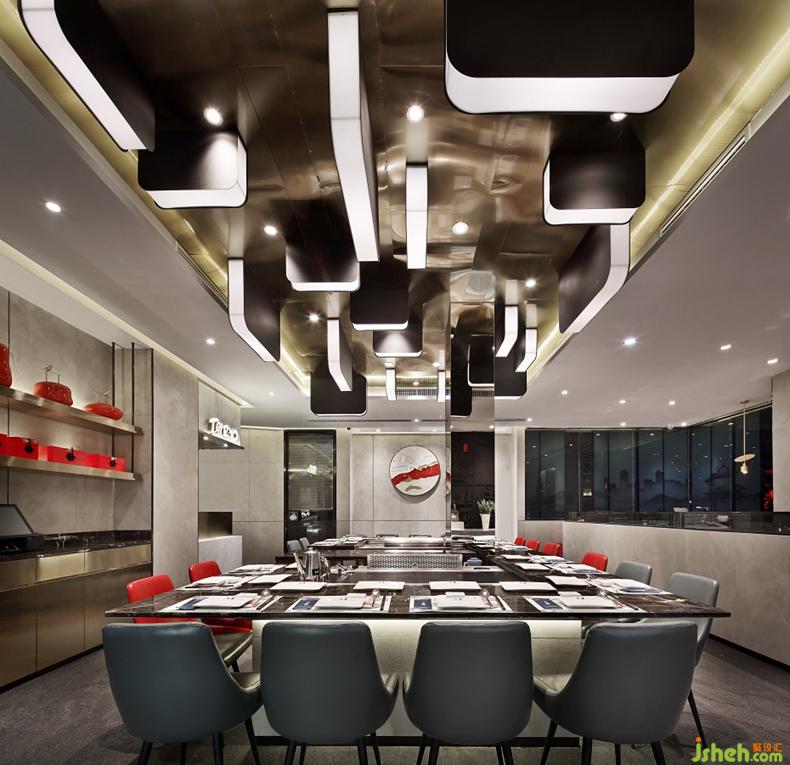 沁潤著淳古遺風(fēng)的紅,游刃有余地跳躍在沉穩(wěn)的黑白灰調(diào)中,使富有活力與現(xiàn)代感的東方氣質(zhì)氤氳開來。一抹流淌于山水掛畫中,勾畫絲綢之路“長河落日圓”的壯闊意境;一抹停駐于器物陳設(shè)上,熱情碰撞出千古韻長的典雅樂章......餐廳設(shè)計