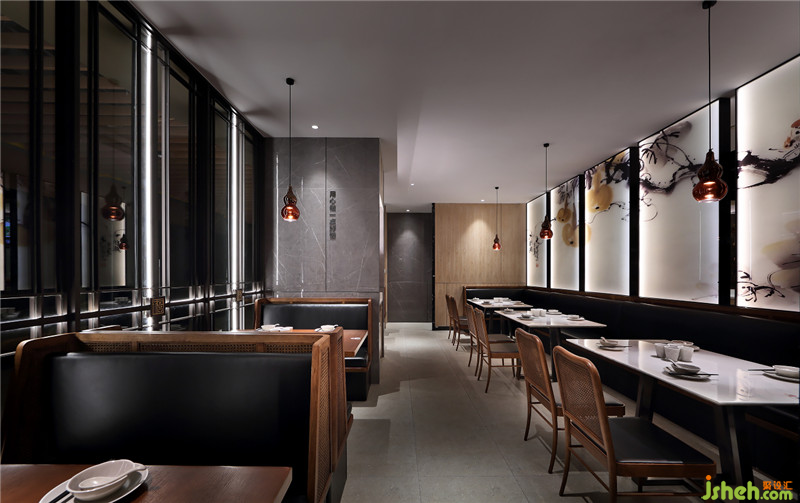 在東方傳統(tǒng)的思想中,“葫蘆”同“福祿”,是福氣的化身。設(shè)計(jì)師提取百福與葫蘆元素,重組當(dāng)?shù)亟ㄖ饭胺枺瑥馁|(zhì)樸入新的人文情懷著筆,營造一家簡約、雅致而帶有溫度的中餐廳。