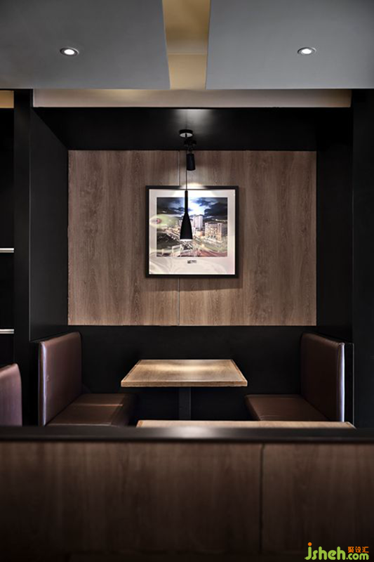 正所謂“千里海岸線,一幅山水畫”。本案空間中裝飾畫皆選用極富威海地域特色的威海景觀,彰顯威海作為海濱城市的獨(dú)特魅力。二層放映著威海當(dāng)?shù)仫L(fēng)景照片的軟膜燈箱,不僅先“聲”奪人,也是自然風(fēng)景和現(xiàn)代時(shí)尚的融合。依靠著木紋墻,欣賞威海自然風(fēng)景,吃春餅,嘗烤鴨,家的溫馨感自然流溢。餐廳設(shè)計(jì)