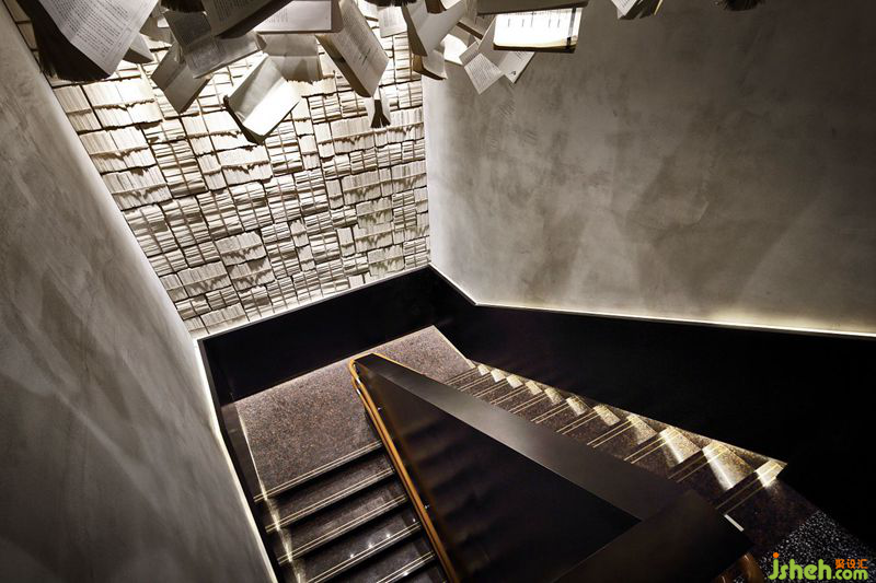 因毗鄰山東大學(xué),設(shè)計(jì)師在空間設(shè)計(jì)中增添了書籍元素,契合周邊大學(xué)的書香氣息。懸掛在樓梯天花上的書籍裝置映入眼簾,一排排陳列的書半開(kāi)半闔,錯(cuò)落有致,營(yíng)造出“書海”氛圍,給人一種猶如沉浸在知識(shí)海洋的夢(mèng)幻感。