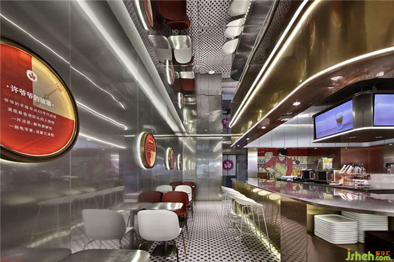 本案既有對傳統(tǒng)甜品文化的傳承,又有獨(dú)到創(chuàng)新。中島式操作區(qū)設(shè)計(jì),環(huán)顧四周,展示盡收眼底;吧座的增加讓顧客親密互動,享用甜品的舒適體驗(yàn)瞬間升值。