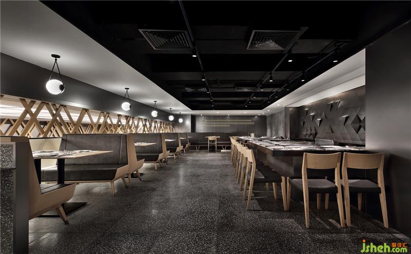 本案設(shè)計師追溯大漁鐵板燒的歷史,以灰、白、黑、木色等主色調(diào)營造出一個日式氛圍空間,給人時尚新潮、簡約素凈的用餐體驗。