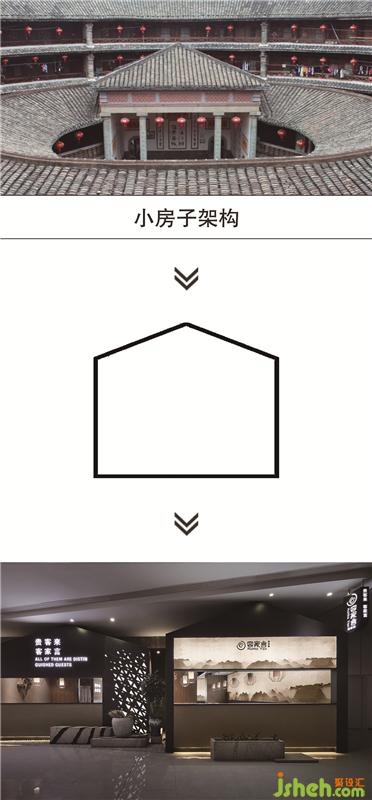 “遷移”和“融合”是客家文化中的兩大主題。餐廳設(shè)計(jì)