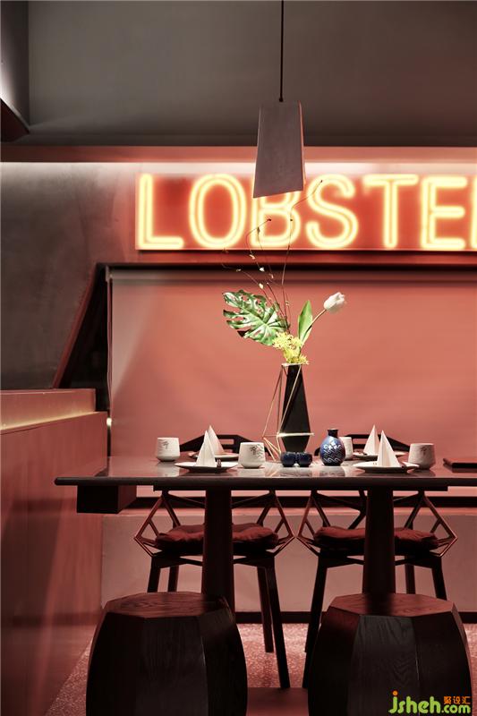 踏著溫潤(rùn)臺(tái)階就來到二樓,私密性陡然上升,這不單得益于包間的“腹內(nèi)有乾坤”,也有位置的抬升在味覺上的呼應(yīng)關(guān)照,“蝦”在舌尖的滋味的更上一層樓。餐廳設(shè)計(jì)