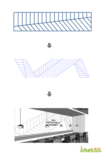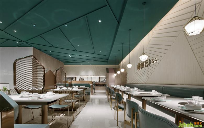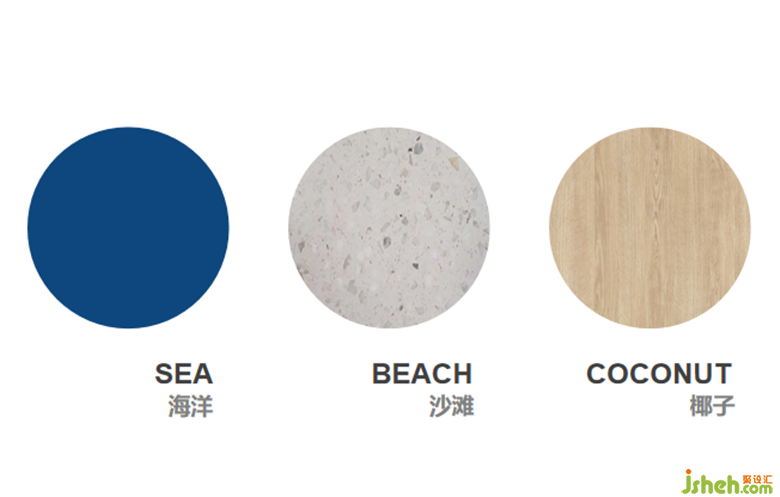 以海灘為基礎(chǔ)色調(diào),以深藍(lán)和淺藍(lán)的海洋為空間輔助色,還提煉出椰樹葉子的線條元素,營造出清新自然、舒適休閑、時(shí)尚輕奢的聚餐氛圍。餐廳設(shè)計(jì)