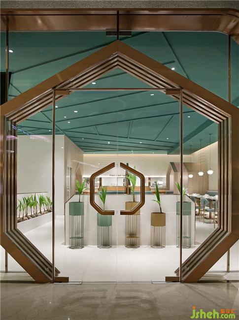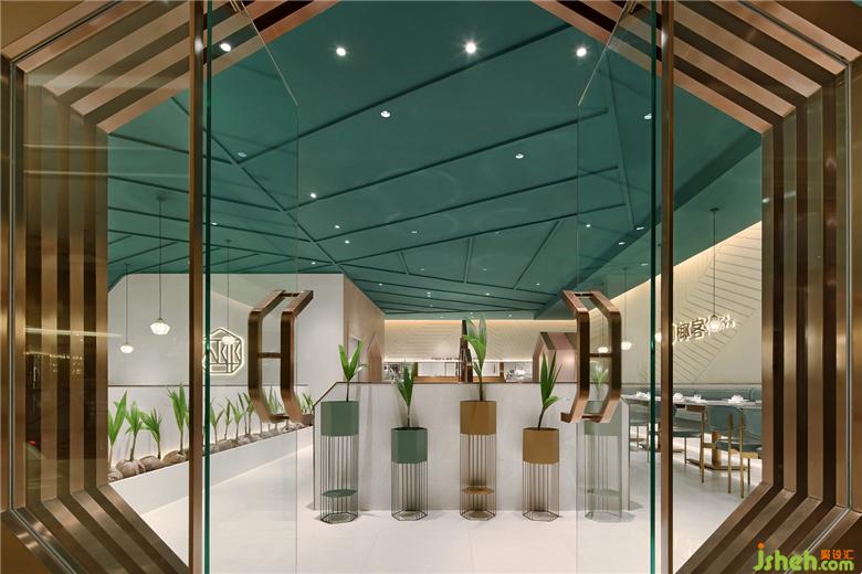 天花上是翻涌的海浪和無限放大的椰樹葉子脈絡(luò),營造出在深海里吃椰子雞的新奇氛圍。金屬材質(zhì)的應(yīng)用讓餐廳的輕奢、高級感呼之欲出。