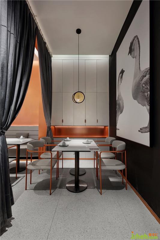 右側(cè),半圓明檔的掉鵝留存了鹵鵝店經(jīng)典印象。青磚排布的明檔讓餐廳設(shè)計帶上一絲復(fù)古氣息,不僅讓傳統(tǒng)材料煥發(fā)出現(xiàn)代藝術(shù)感,也讓顧客切身感受到餐廳對傳統(tǒng)鹵鵝文化的關(guān)照。