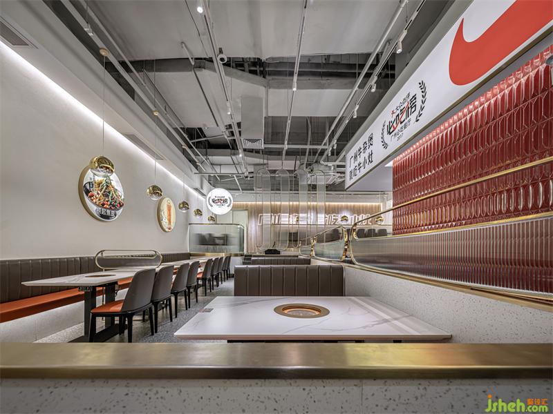 “廣州牛雜煲,就吃牛小灶” 本案「牛小灶」空間設計經過我們分析論證圍繞簡約干凈的基調開展設計師從牛小灶logo中拆解品牌超級符號“紅色大牛角”解構重組、轉化應用在空間中營造簡潔干凈、質樸自然的牛氣空間