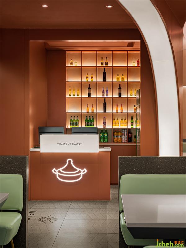 承接歷史的腳步,來到西安古城,瞭望城墻下,拱形門洞里,形形色色的人留往來穿梭,遠(yuǎn)處晚霞散落,夜幕拉下,城門開啟,就是品嘗燜鍋的時(shí)刻。本案黃記煌升級設(shè)計(jì),設(shè)計(jì)師將古城的布局整理演化,結(jié)合城墻的拱形元素,在入口打造一處“城門”打卡造型,兩道拱門交錯(cuò)疊加,彼此呼應(yīng)。顧客走過2道拱門,才到城內(nèi),正式進(jìn)入黃記煌這味蕾之城。