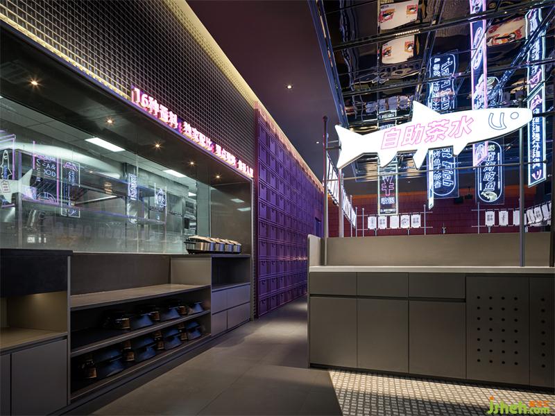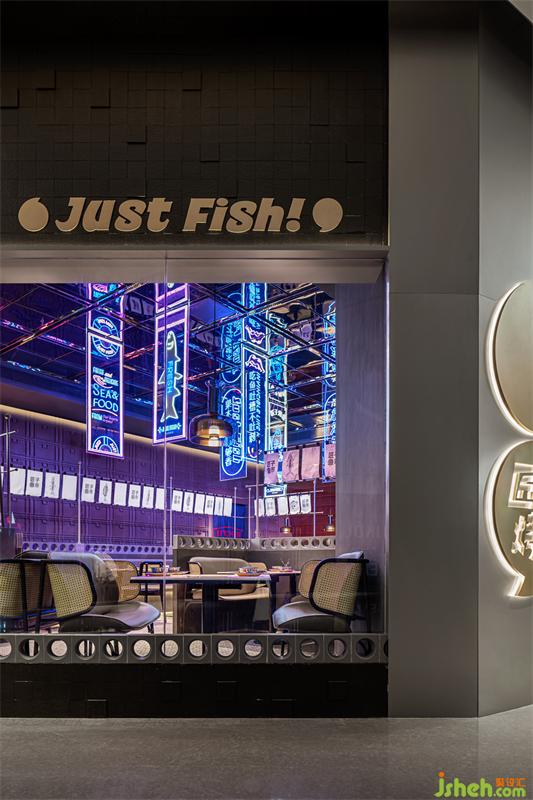 通透的開放式門頭,給人在魚市里閑逛的感覺,散漫悠閑而治愈;霓虹燈光不僅吸睛,還能讓人卸下防備,沉浸在烤魚的香氣和相聚的愉悅氛圍里。