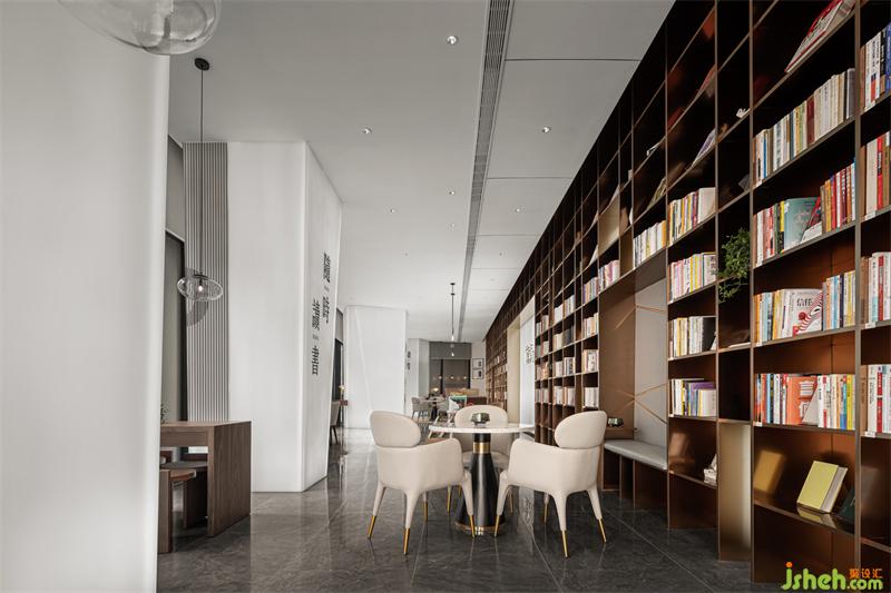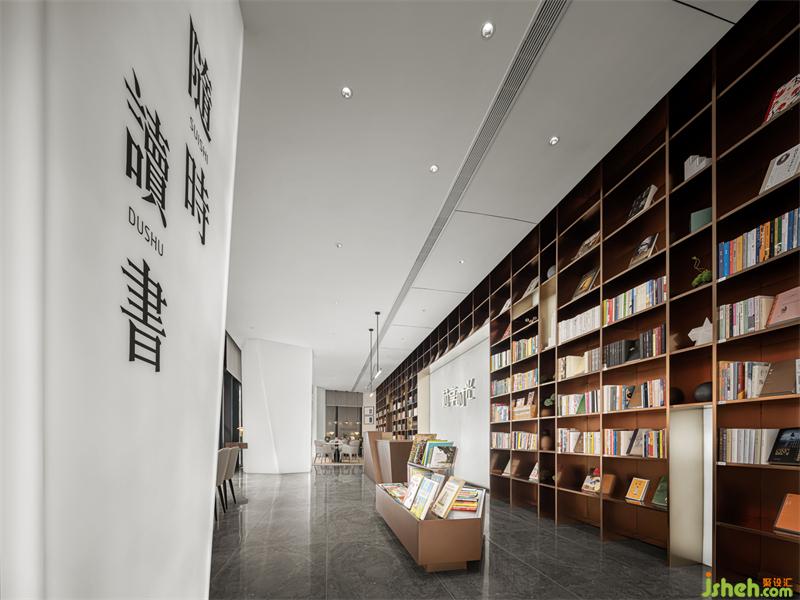 吧臺(tái)延續(xù)著門(mén)頭的立體折紙?jiān)O(shè)計(jì),舞蹈室設(shè)計(jì)室內(nèi)外自然呼應(yīng);大面積落地的陳列書(shū)柜,營(yíng)造著洋洋灑灑的書(shū)香氛圍,為安靜的閱讀時(shí)光注入精致感。