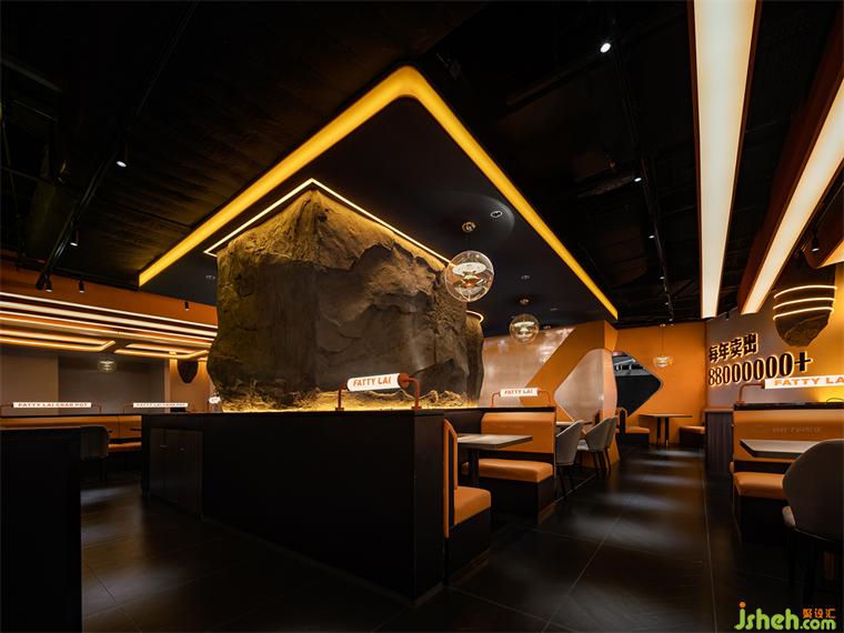 凹凸不平的塑石假山墻面象征崎嶇的火星地表,天然的形態(tài)巖色在時(shí)尚現(xiàn)代的裝潢中增添一絲完全不加修飾的原始樸素美感。