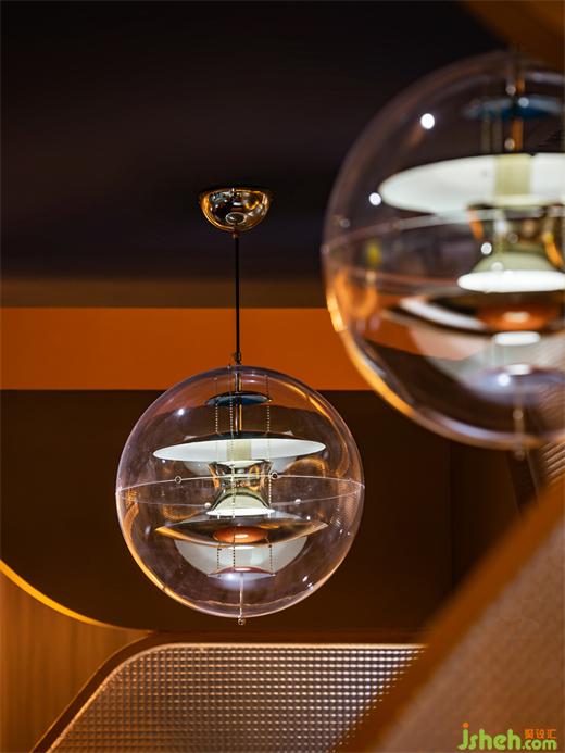 玻璃外殼與金屬內(nèi)芯聚合成體現(xiàn)未來感的球型燈具,像游離在現(xiàn)實世界邊緣的未知分子,越是不具名的事物,越是擁有深不可測的奇幻魔力。
