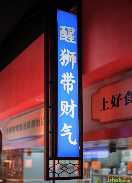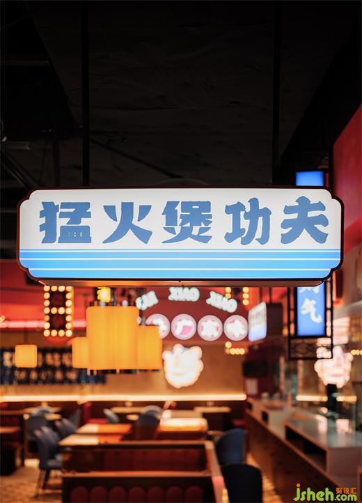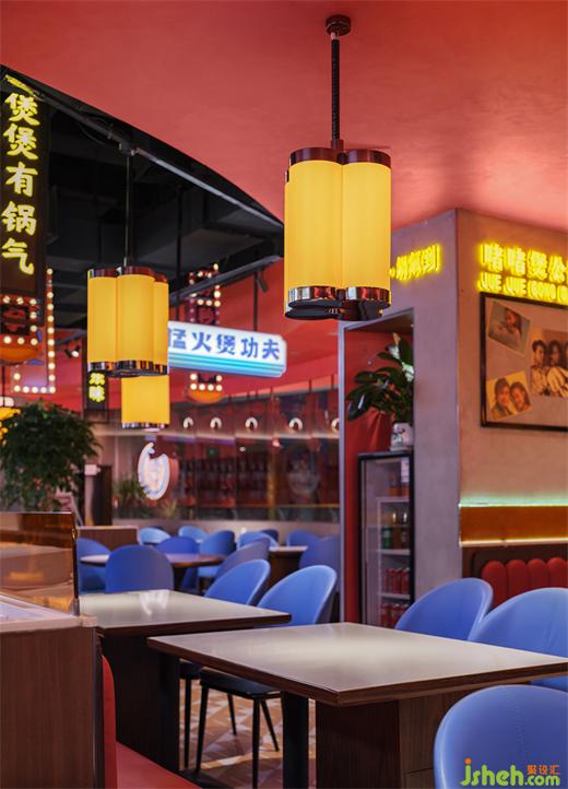 經(jīng)典閃爍的霓虹燈招牌,投射出過去街頭繁華的城市商業(yè)縮影。餐廳設(shè)計顯眼絢爛的幻彩燈光結(jié)合醒目的特色標(biāo)語,舊時代的產(chǎn)物經(jīng)由我們熟悉的視覺場景語言,烘托沉浸式的市井氛圍。