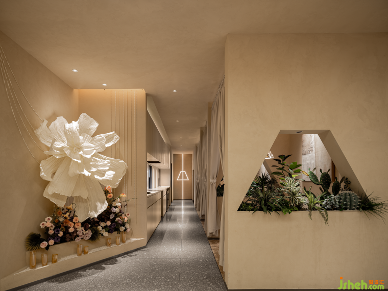 模擬船內(nèi)隧道,再搭配藝術(shù)感體塊,