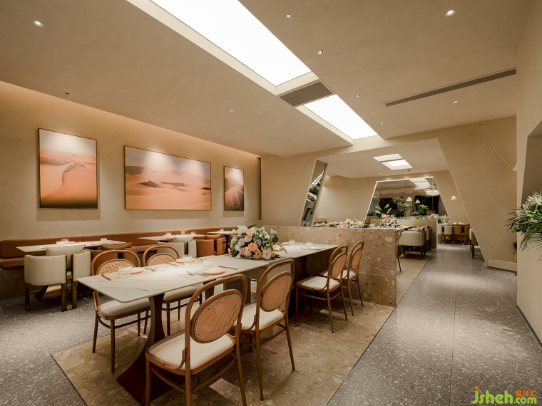 餐區(qū)空間設(shè)計(jì)以流動(dòng)的沙丘軌跡為依據(jù),
