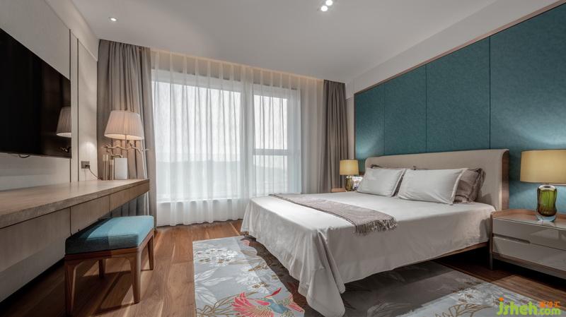主臥室采用了來自于大海的湖藍(lán)色系,呼應(yīng)窗外的海灘也適合老年人的視覺與心理環(huán)境。為業(yè)主營造出舒適而溫馨的休息空間。