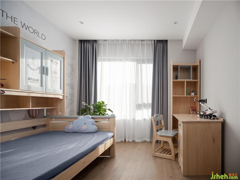 兒子房滿足男孩活潑好動爬上爬下的特征,用了組合床。