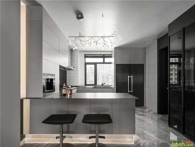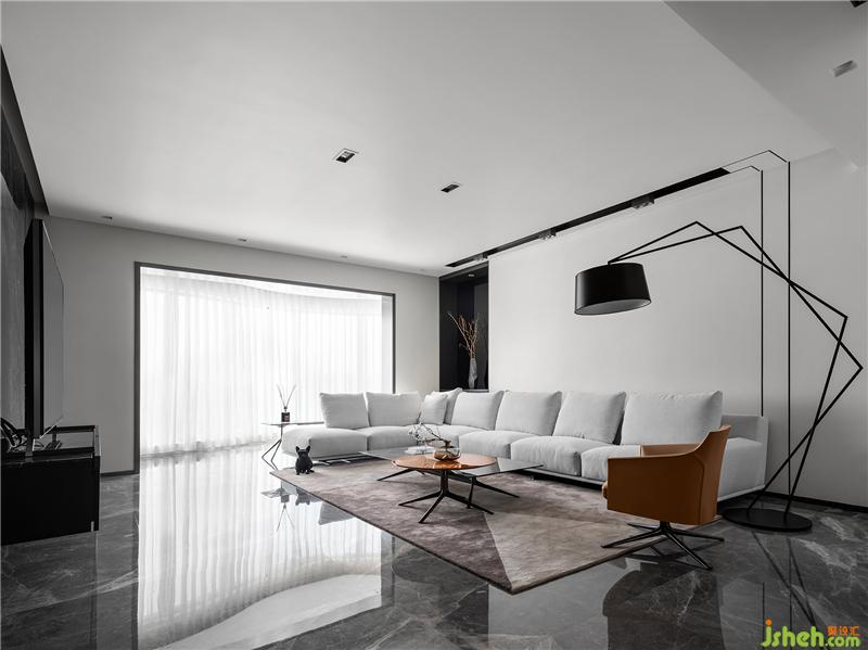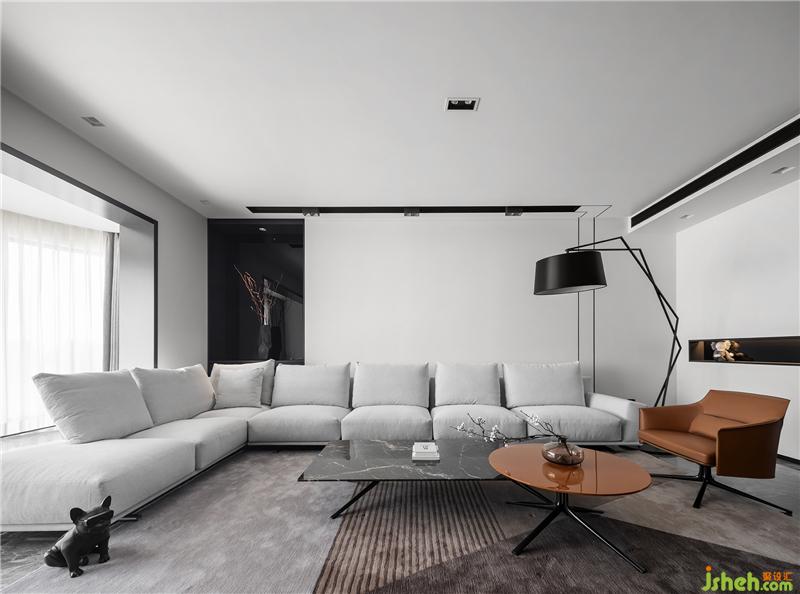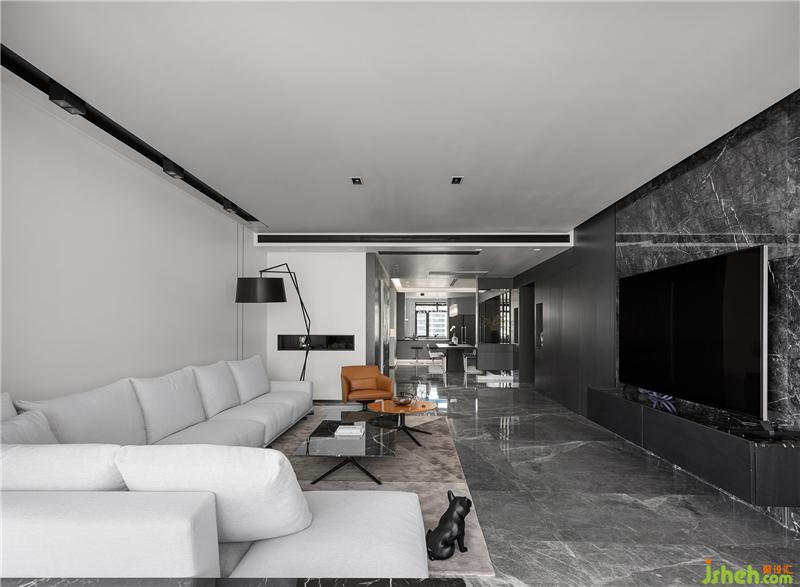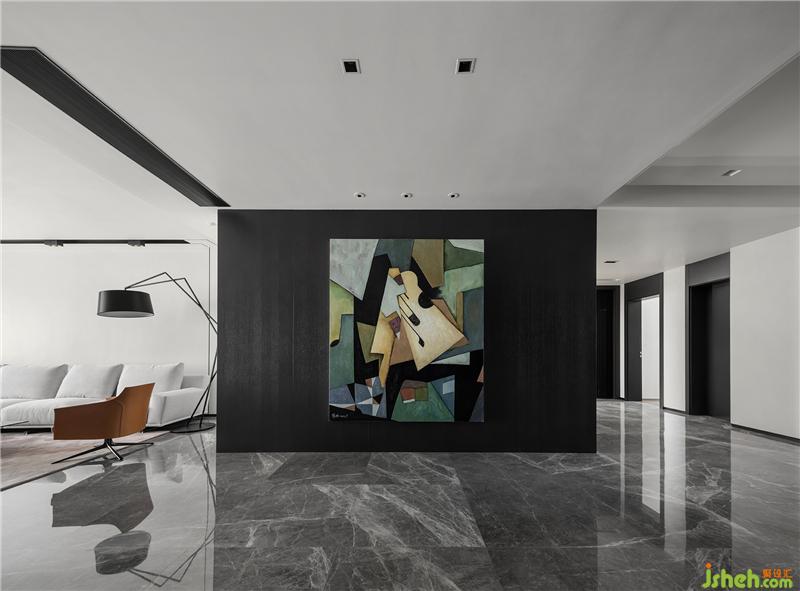 主要材料:煙熏黑橡、云朵拉灰大理石、白色乳膠漆