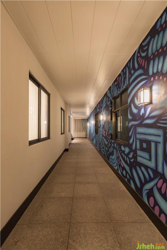 長廊在整體設計風格的影響下更增添了戶主的個人性格色彩,藍粉色的活潑設計與其通向的室內(nèi)卡拉OK相呼應,也開辟出了整個別墅最有活力的一角。