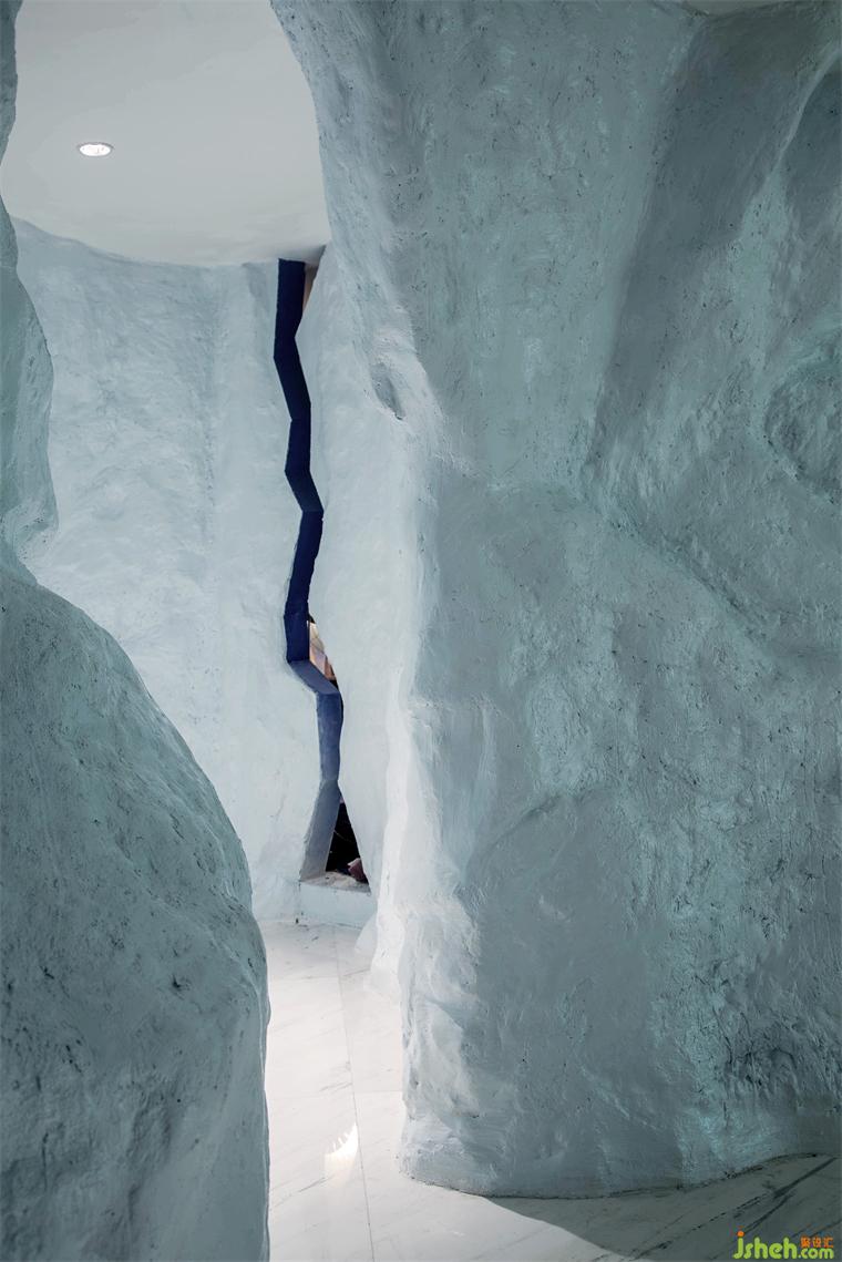 甫一進(jìn)門,粗糲的純白石面圍合出曲折幽深的入口,裝修設(shè)計是引領(lǐng),亦是鋪墊。光、影、石壁交織出視覺的壓迫感,于無形中營造沉靜的氛圍,隔離了外界的喧囂,行走其中,頗有曲徑通幽的意味,體驗的期待感進(jìn)一步拉長,也為進(jìn)入空間做足鋪墊。
