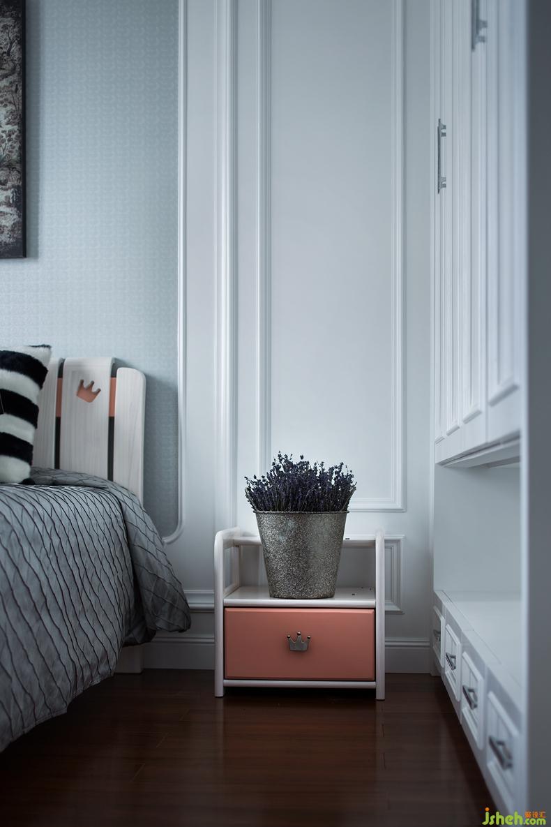 女孩房,設計師用個性相左的灰藍色與黑白條紋組合,碰撞中帶來超強的吸引力。