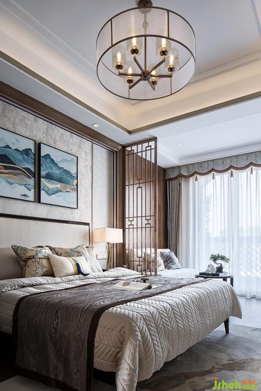 臥室的設(shè)計(jì),以淺色調(diào)延續(xù)了空間清雅之風(fēng),相較之,其些許不同,是多以色彩上的“暖”基調(diào),營造了空間的舒適和溫馨。軟硬裝搭配和諧統(tǒng)一,吐露春意的梅花、松柏將東方之美同時(shí)隨心融入。