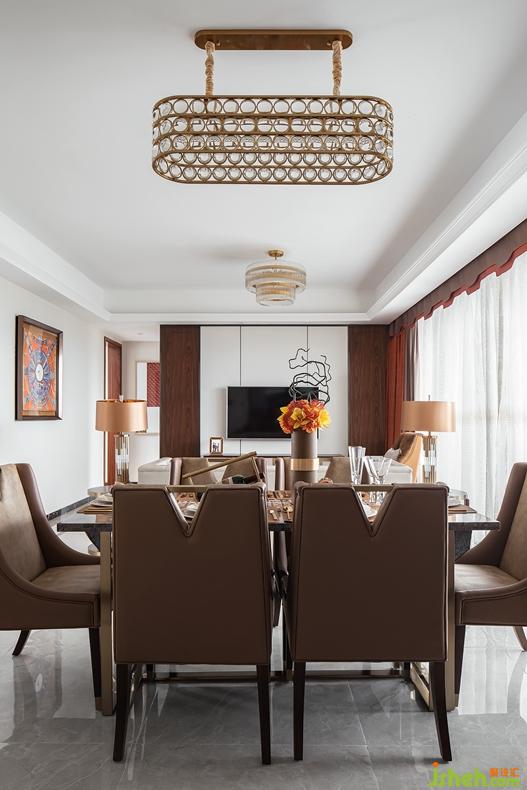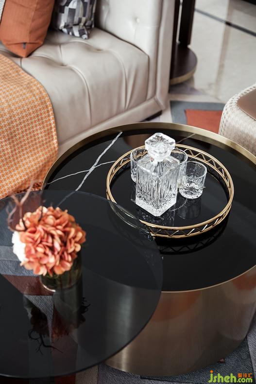 灰色的菱形格紋地毯紋絡(luò)凹凸起伏,與沙發(fā)形成不同色階的對比與延伸。高貴的灰色大理石為基調(diào)搭配出低調(diào)奢華之感,茶幾拉絲面金屬材質(zhì)點亮了空間活力,空間疏密有致,調(diào)節(jié)空間節(jié)奏感,進(jìn)而使環(huán)境和諧有序?!按蠖Y不辭小讓”,真正的奢華隱藏于細(xì)節(jié)的雕琢之中,集于凝練成簡潔、優(yōu)雅的存在,才能直抵內(nèi)心。