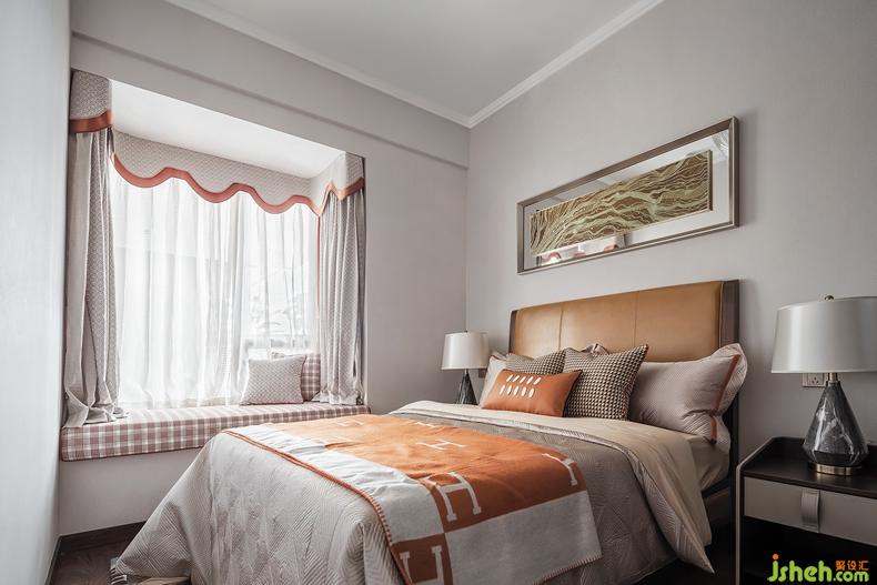 穿過格柵是步入式衣帽間,主臥以沉著的灰色調(diào)主導(dǎo)的空間轉(zhuǎn)向當(dāng)代極簡主義,垂墜至眼前的吊燈、滿布褶皺的牛皮藝術(shù)畫在臥室中找到色調(diào)的平衡感。
