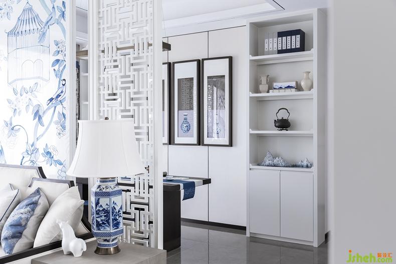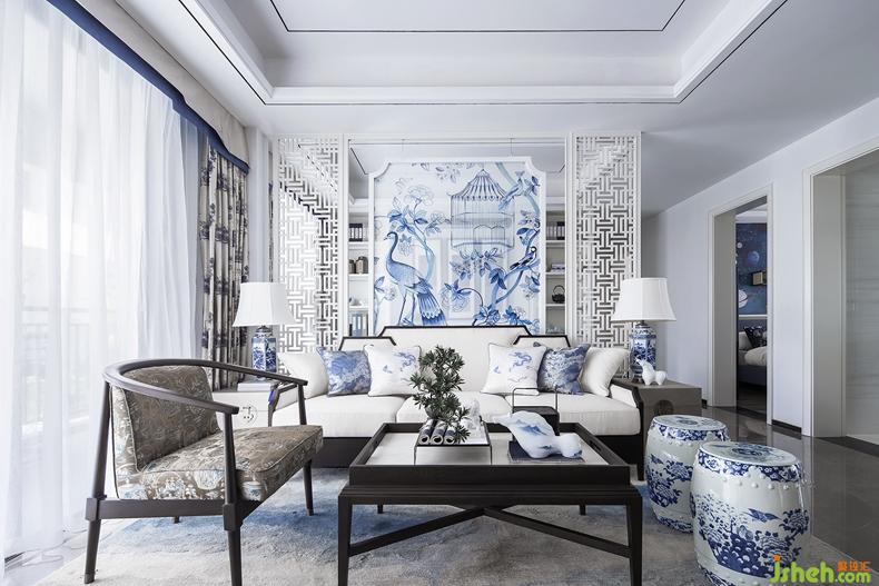 客廳青花瓷墩,靈動氣韻,實(shí)木小椅,憑添休閑氣質(zhì)。而具有簡約時(shí)尚感的白色的青花隔斷背景,亦古亦今,亦繁亦簡。