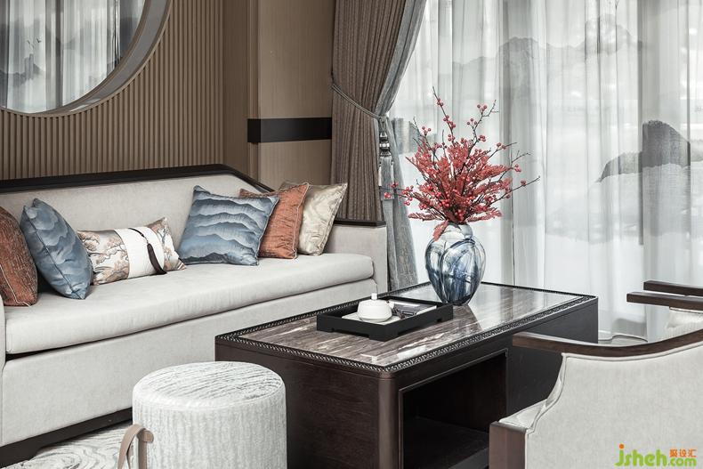 隨處可見的硬裝用料與暖系燈光相得益彰,讓光與影的交織遙相呼應(yīng)。透過簾幕的清風(fēng)陣陣拂來,只覺遠(yuǎn)處的群山隱沒,光色柔美,洋洋灑灑。