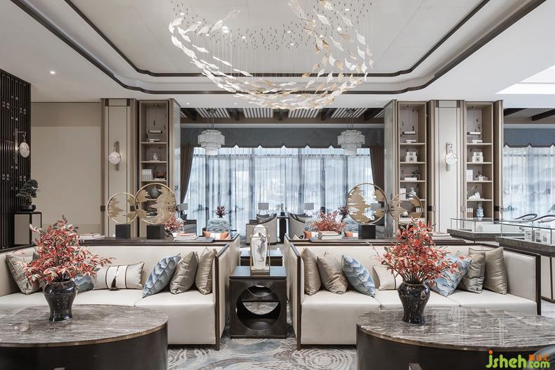 大自然的光怪陸離成就了最好的素材,設(shè)計(jì)用群魚徜游吊燈塑造了奇幻的景象,水與魚的元素,以極富靈動(dòng)的音律響徹在大堂,倒映下的點(diǎn)點(diǎn)斑駁,描狀一副疏影橫斜水清淺。心靈與水光共起伏,氤氳著淡然的幽蘊(yùn)氣息。