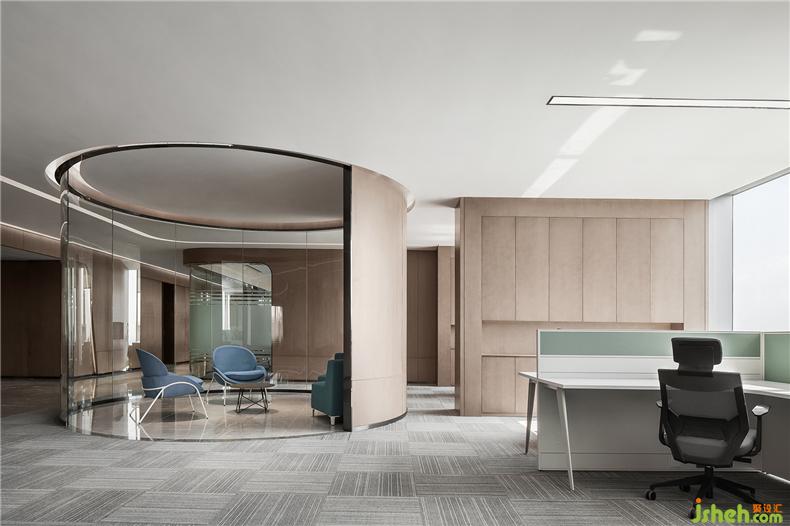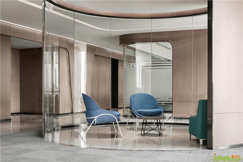 當(dāng)光線進(jìn)入空間,某種被凈化了的空靈的氣氛便會(huì)產(chǎn)生,讓空間更加氣質(zhì)化。南寧辦公室設(shè)計(jì)通過空間的疊加與縮放、玻璃的透明屬性及肌理變化,最大限度地敞開空間尺度。