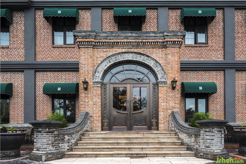 設(shè)計(jì)師王曉飛與酒店業(yè)主張總在設(shè)計(jì)靈感以及表現(xiàn)方式達(dá)成完美契合,就建筑表皮而言,其靈感來(lái)源于民國(guó)建筑,既保留中國(guó)的傳統(tǒng)風(fēng)格,又吸收了一些西洋建筑元素,是從傳統(tǒng)走向現(xiàn)代的過(guò)渡階段,其表皮所有的紅磚皆來(lái)自民國(guó)時(shí)期的粘土磚,在外觀上最大化的保留歷史韻味。