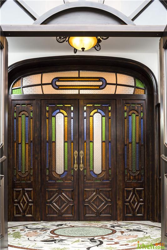 入口設(shè)計(jì)師特意設(shè)計(jì)一個(gè)玄關(guān),仿佛在提醒人們這里已與外界隔絕。獨(dú)具特色的大門(mén)由設(shè)計(jì)師為此空間定制而成,彩色玻璃鑲嵌其中。