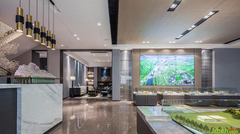 中軸對稱式的布局,加上單純的線條,純粹的雅致,使得營銷中心硬朗卻又不失柔和,簡單而又不失大氣。