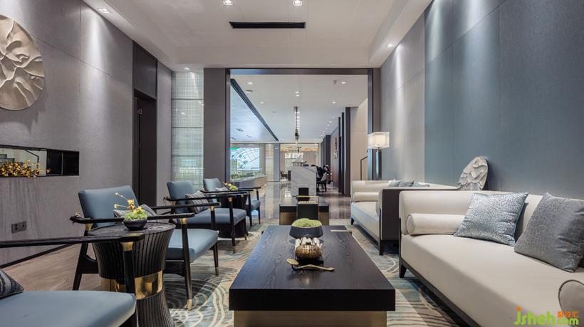 洽談區(qū)承一處閑暇,以中式的神韻為底,融現(xiàn)代幾何圖形為“翼”大小不一,飛懸半空。