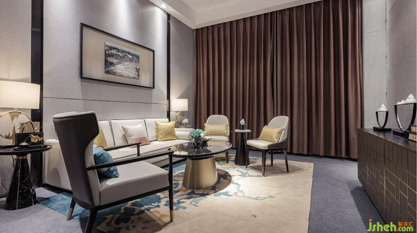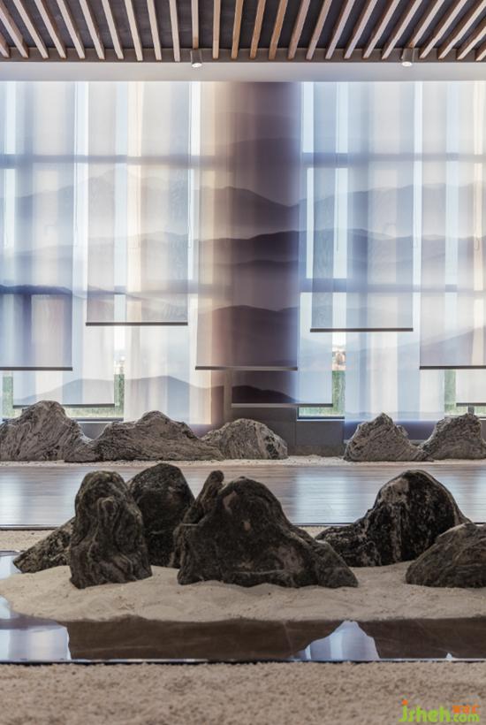 印有山水的紗簾,在延續(xù)一層大廳元素的同時,也與竹枝假山造景相關聯(lián),營造出空靈寧靜的藝術氛圍。