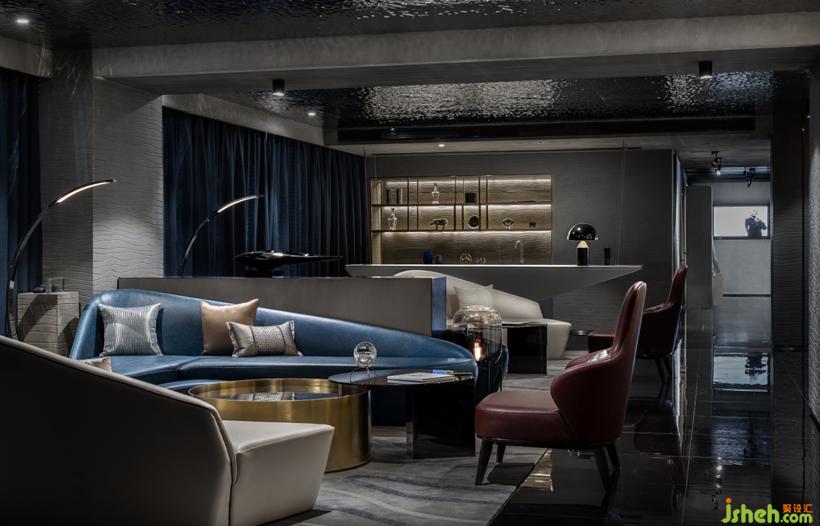 天花頂水波紋金屬板材質(zhì)在地面暈開層層波浪,讓光線若有似無的流動。