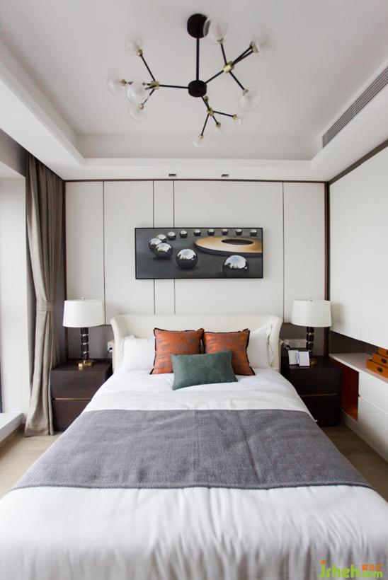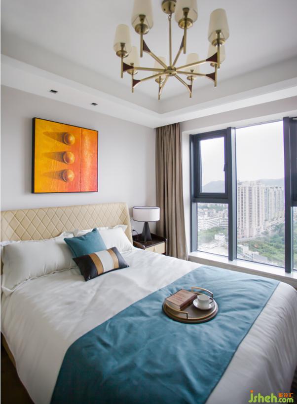 現(xiàn)代感十足的床頭燈飾,神秘有趣的掛畫,是空間主人對當下生活及自我的一種解讀。