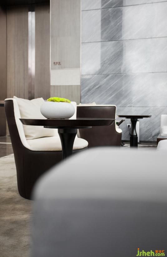 空間是人與環(huán)境的一個重要鏈接,接待廳盡10米的建筑挑高引入了自然光線的同時也將戶外的景致帶入進來。
