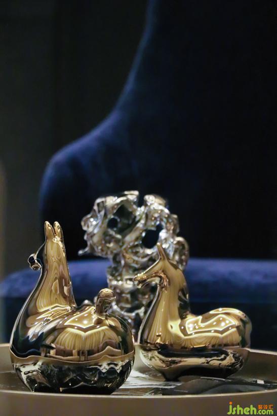 植物的倒影與花器斑駁的紋理形成了互動(dòng),精致的陳設(shè)在燈光的映襯下更顯品質(zhì)。