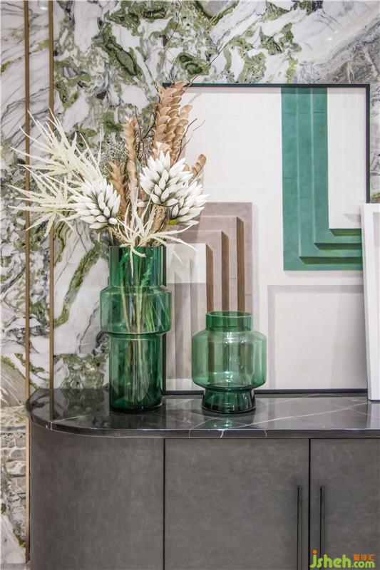 高級而富有質(zhì)感的大理石紋作為背景,幾何立體裝飾畫搭配出豐富層次并且多樣的質(zhì)感。樣板房設(shè)計