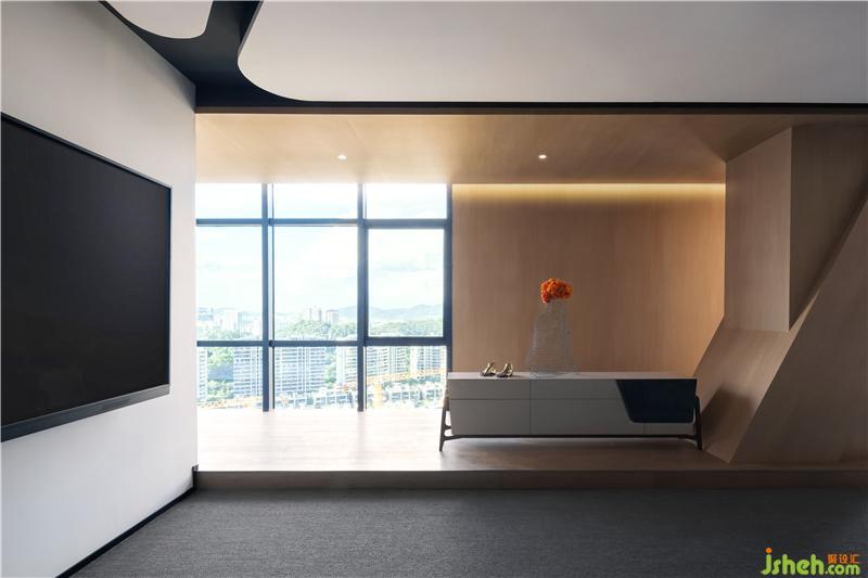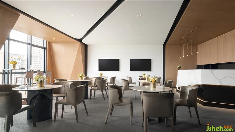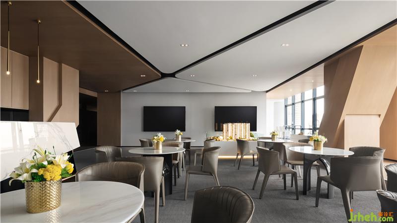 洽談區(qū),意在去售樓處化,用當代藝術(shù)重新定義空間,打造專屬的都市會客廳。頂部獨特的設計減輕空間縱向厚重感,延伸效果由此產(chǎn)生。木質(zhì)所帶來的輕盈和流暢的線條隨處可見,到訪者逐光而行,感受設計的智慧。這便是我們給你最好的禮物。